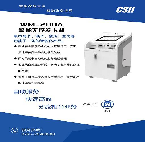 即时的制卡自动化的业务流程管理、便携的自助服务形式,解决了客户排队办理的问题...